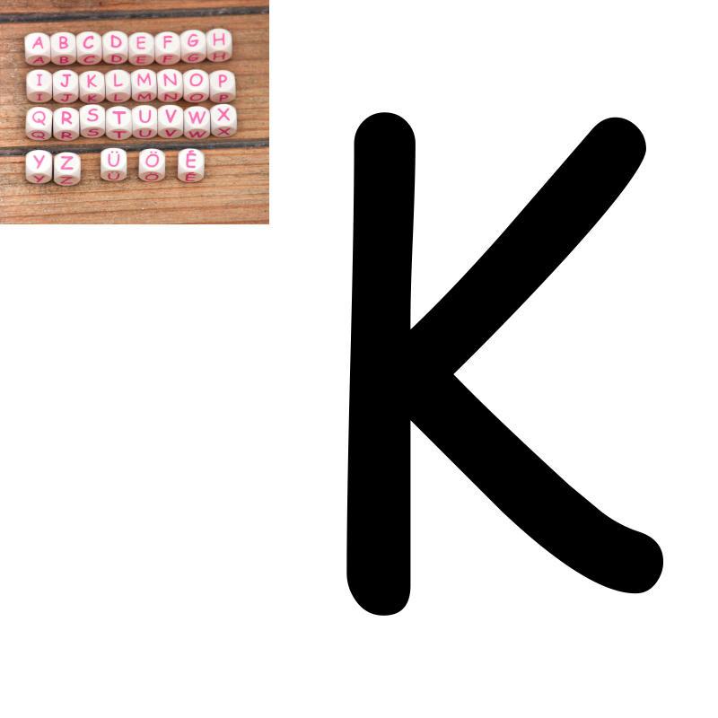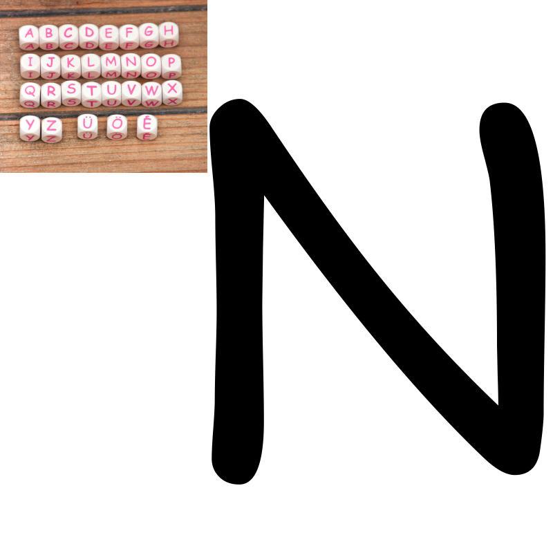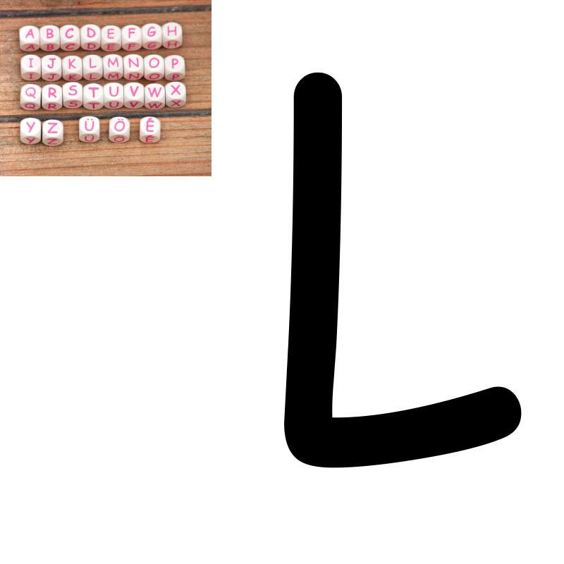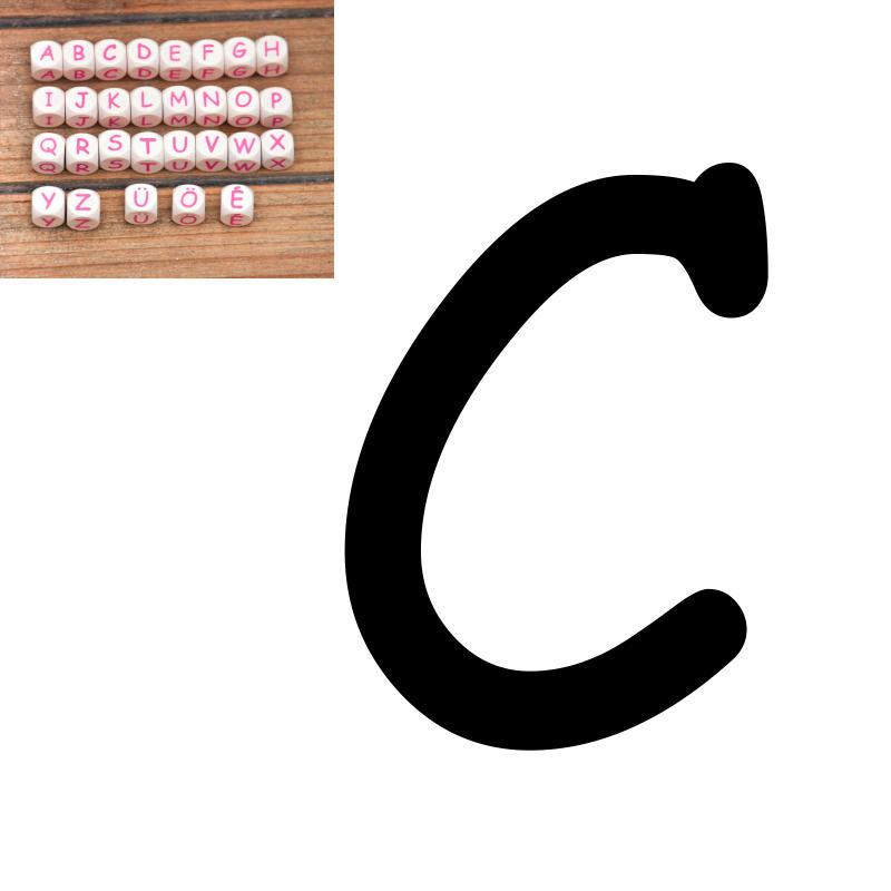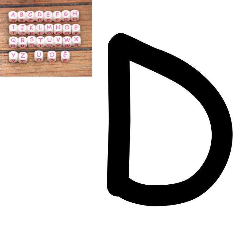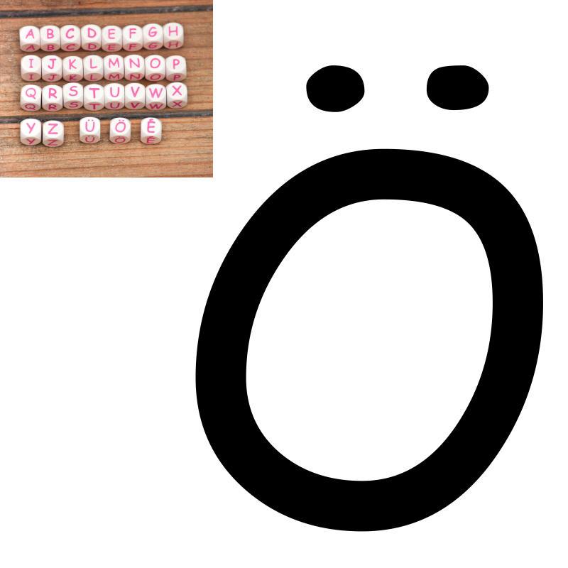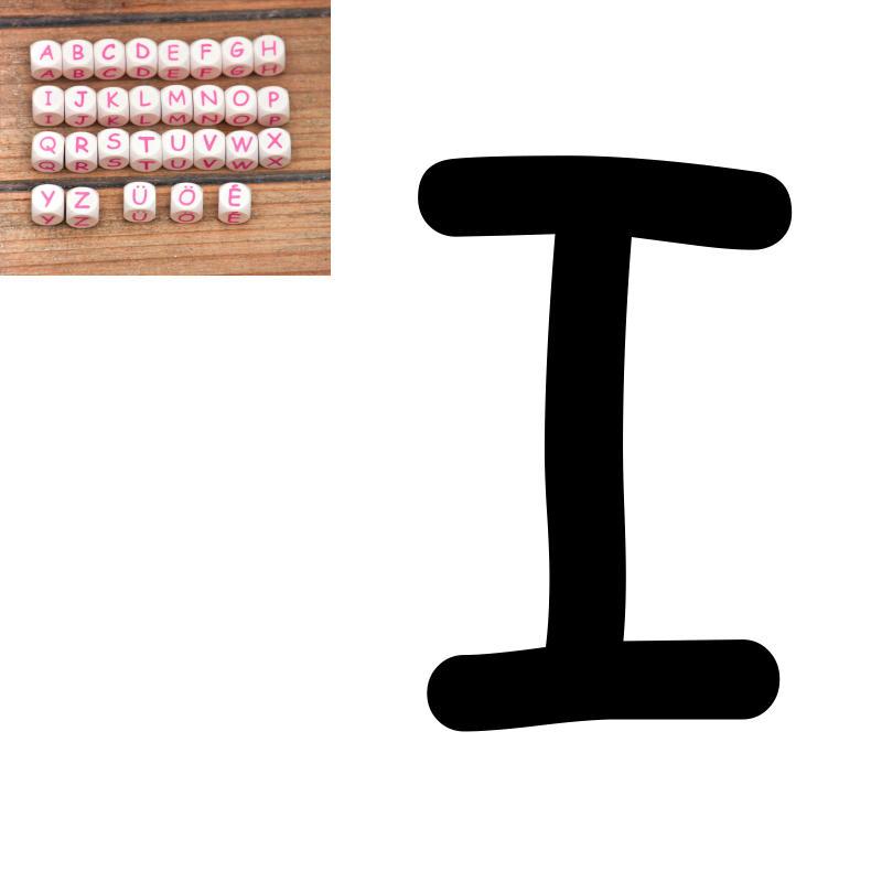 Die Ecken der geprägten Buchstabenwürfel sind abgerundet und haben eine Kantenlänge von 10mm. Die Buchstaben sind geprägt.