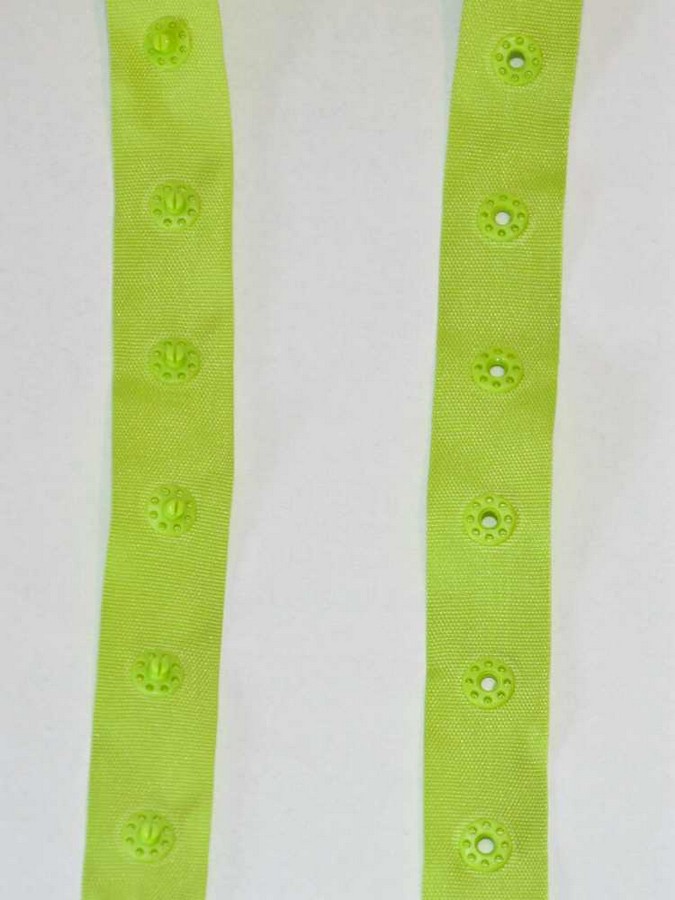 kleine Druckknöpfe in 25mm Abstand verschweißt. Die Farben sind auf die Farben der KAM Snaps abgestimmt. Farbe B41