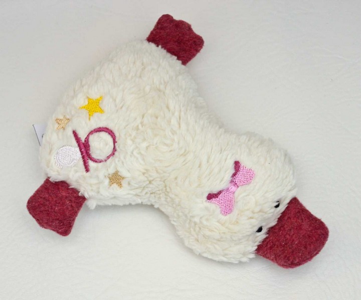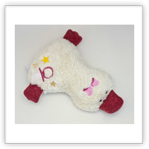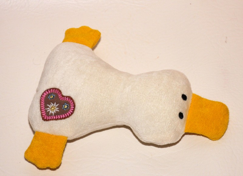 Die Füße und der Schnabel aus 100% Baumwoll (Bio) Fleece, oder 100% Baumwoll (Bio) Frottee oder Jersey.