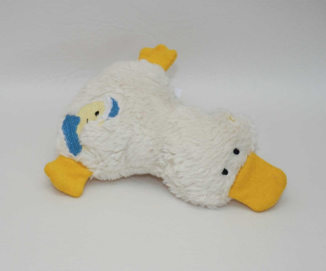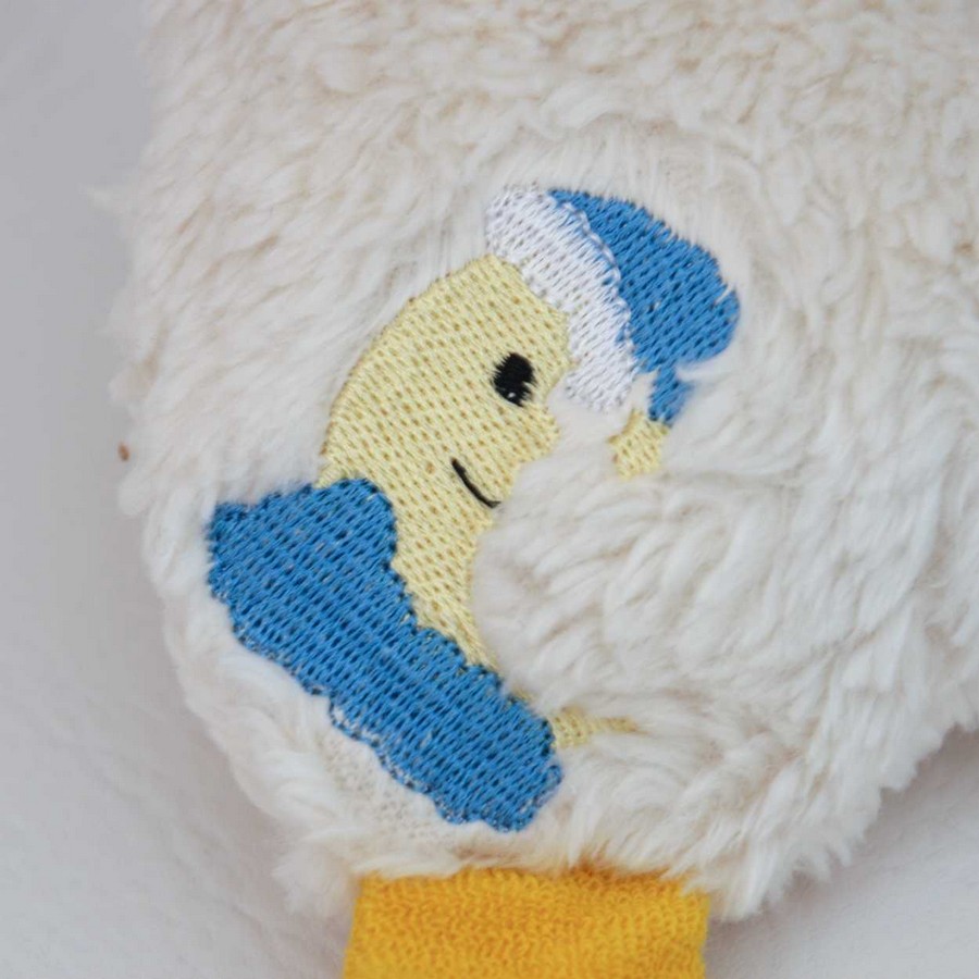 Körper 100% Baumwoll Nicki (offwhite/natur), Füße und Schnabel aus 100% Baumwoll Frottee. Gefüllt mit allergikerfreundlicher PE Faser (100% Polyester).