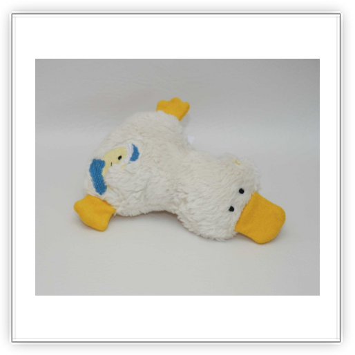 Diese süßen Kuschelenten sind 19-20 cm lang und an den Füßen 16-17 cm breit.