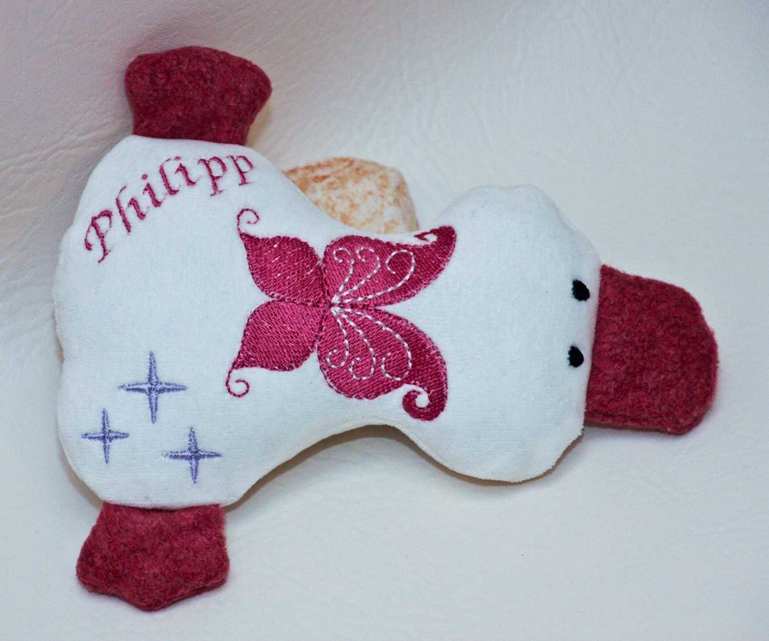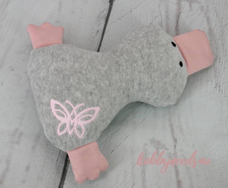 Entchen Stickerei Schmetterling grau rosa