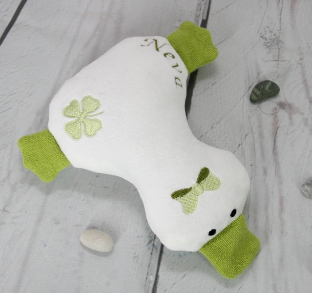 Entchen Stickerei Kleeblatt grün