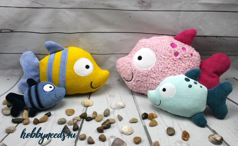 Die süßen Fische sind alle aus Obermaterial 100% Baumwolle (Bio Baumwolle) gefertigt und mit allergikerfreundlicher 100% Polyesterfaser gefüllt.