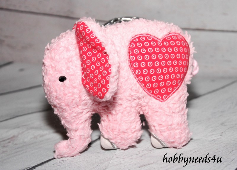 Dieser süße Kuschelelefant ist ca. 14 cm lang, 12 cm hoch und 4 cm breit (ohne Ohren gemessen). Der Körper ist aus 100% Bio Baumwoll Plüsch gefertigt, die Vorderseite der Ohren und das Herz aus Jersey (95% Bio Baumwolle, 5% Elasthan). Gefüllt ist der kleine Elefant mit allergikerfreundlicher PE Faser. Das Herz kann gegen Aufpreis (3€) mit einem Namen bestickt werden. Außerdem kann der Körper des kleinen Elefanten rasseln (Aufpreis 1,5€). Waschbar bei 30 Grad. Stickdatei: Kreativuli
