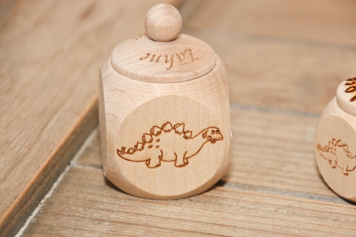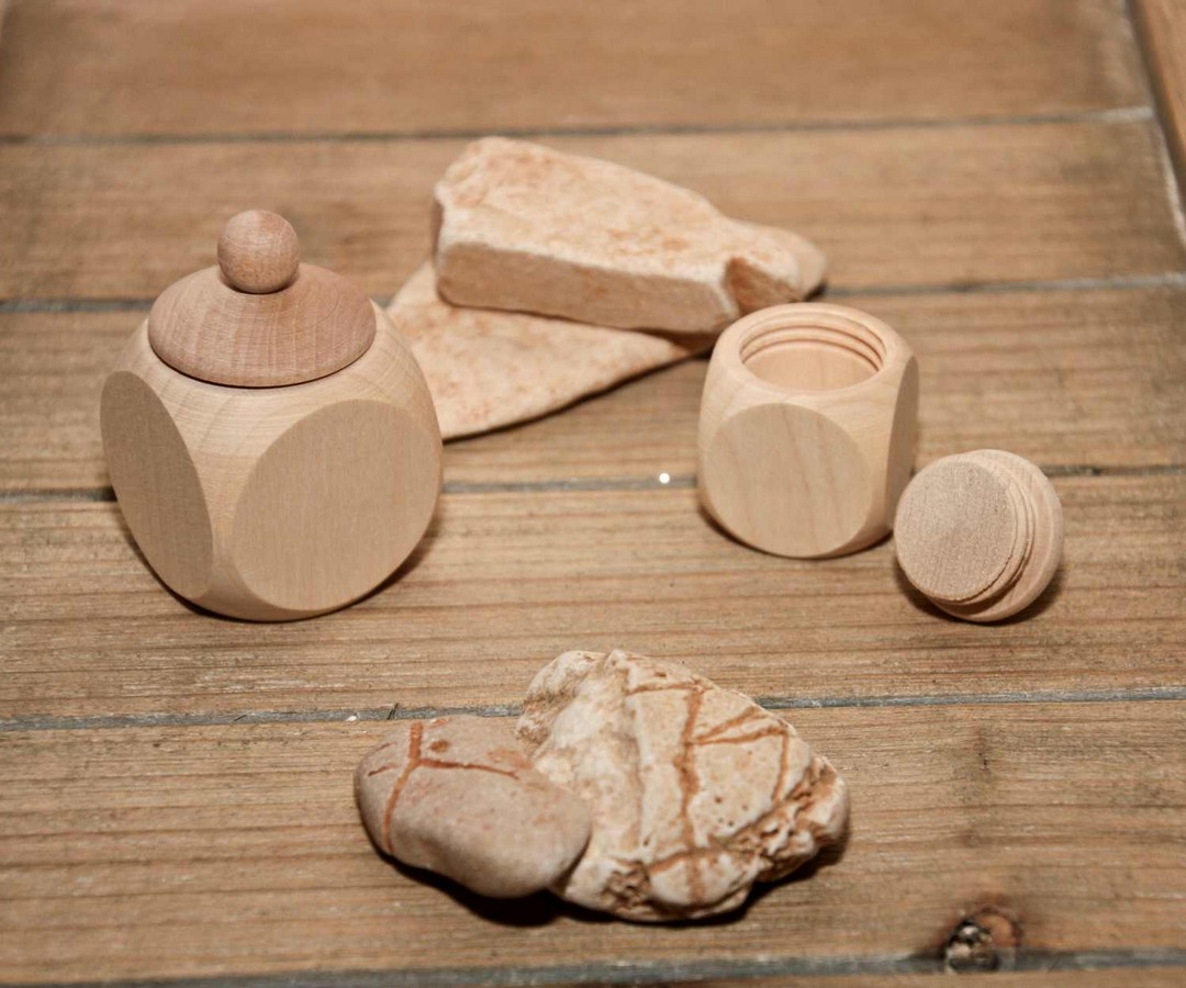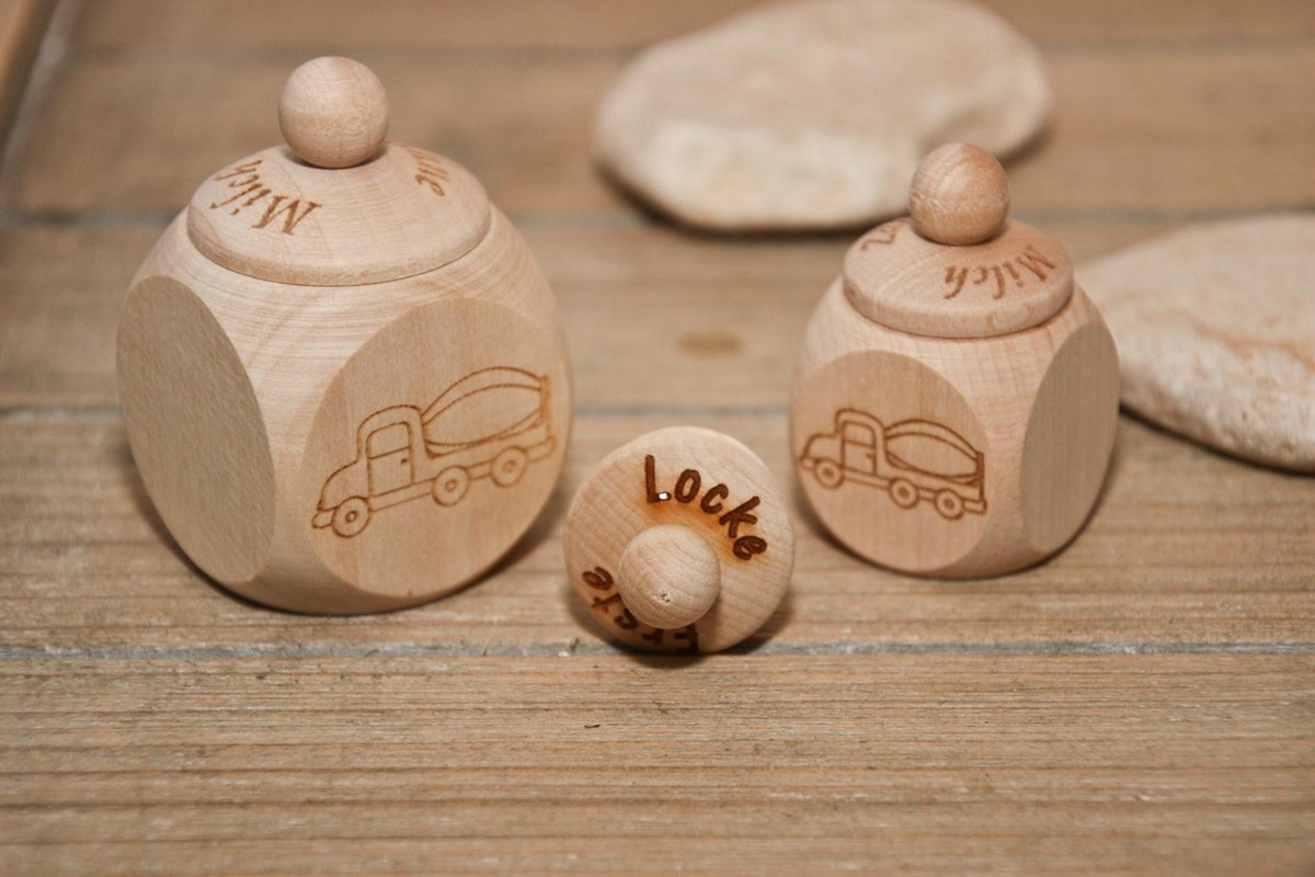 Diese Dose aus unbehandeltem einheimischen Ahornholz eignet sich durch den festen Schraubverschluß gut als sichere Aufbewahrung für Milchzähne, die erste Locke, Pillen ...