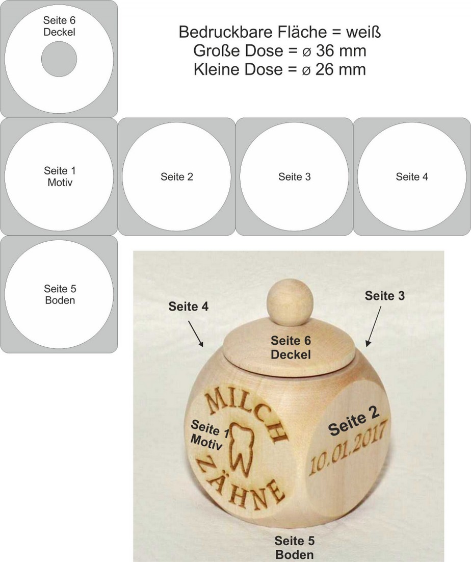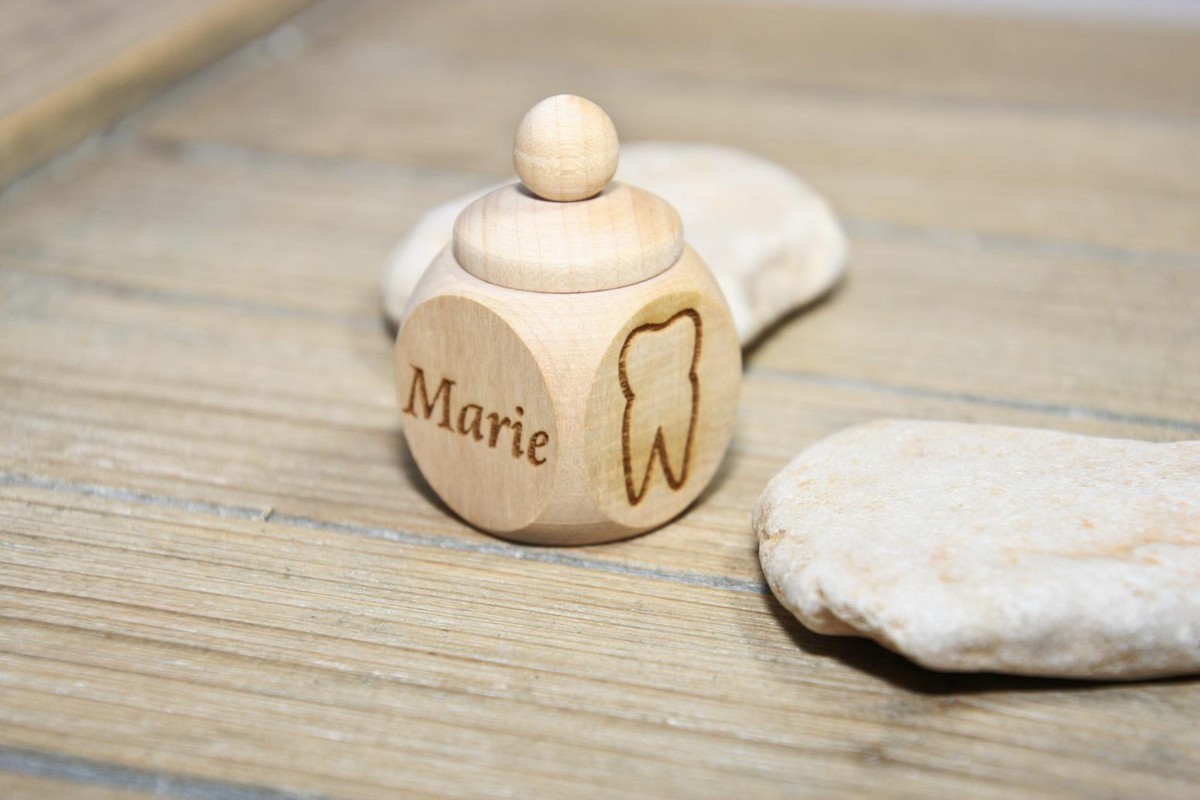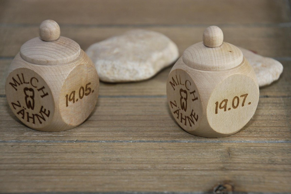 Diese Dose aus unbehandeltem einheimischen Ahornholz eignet sich durch den festen Schraubverschluß gut als sichere Aufbewahrung für Milchzähne, die erste Locke, kleine Schätze, u.v.m!