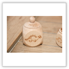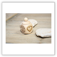 Diese kleine Dose aus unbehandeltem einheimischen Ahornholz eignet sich durch den festen Schraubverschluß gut als sichere Aufbewahrung für Milchzähne, die erste Locke, Pillen ...