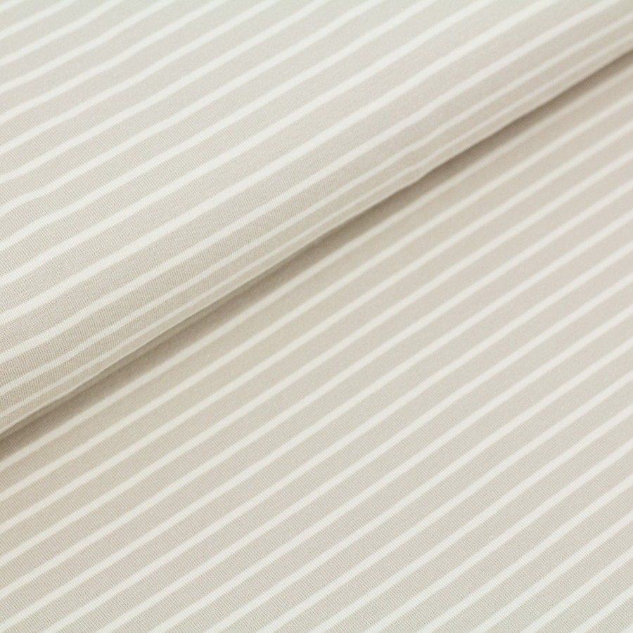 Jerseystoff zeichnet sich durch seine Dehnbarkeit aus. Diese kann auf verschiedene Art und Weise erreicht werden.Beim Single-Jersey werden abwechselnd rechte und linke Maschen verwendet, wodurch der Stoff sehr dehnbar wird.Interlock-Jersey wird an zwei Nadelreihen gestrickt und in einer rechts-rechts Bindung gekreuzt.Ich biete nur Stoffe an, die 95% Baumwolle und 5% Elasthan enthalten oder aus 100% Baumwolle bestehen.