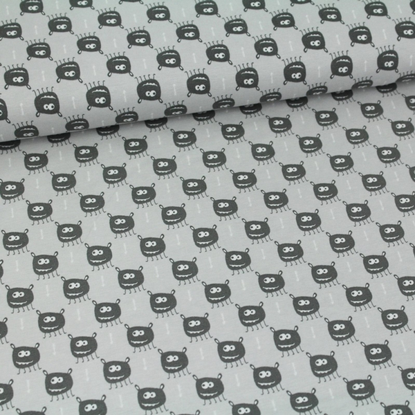 Designerstoff Biojersey Tiny Monsters - grau by Janeas World von Stoffonkel
