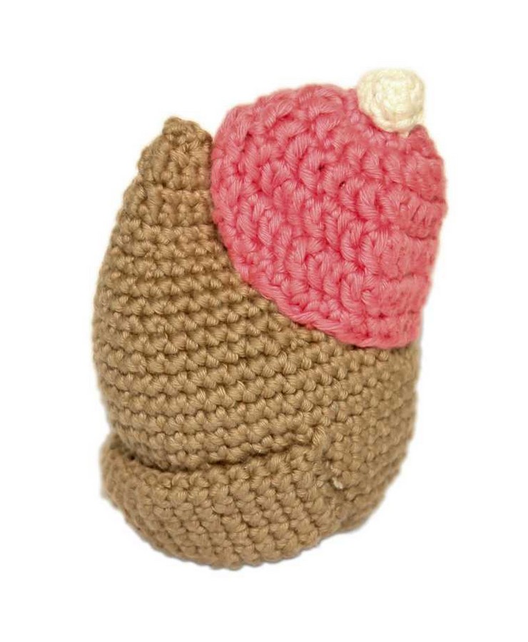 Die Häkelmietzen entstehen als Obermaterial aus Bio Baumwolle und sind allergikerfreundlich mitPolyesterfaser gefüllt.