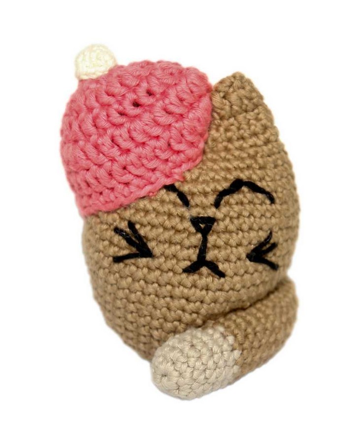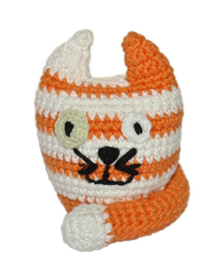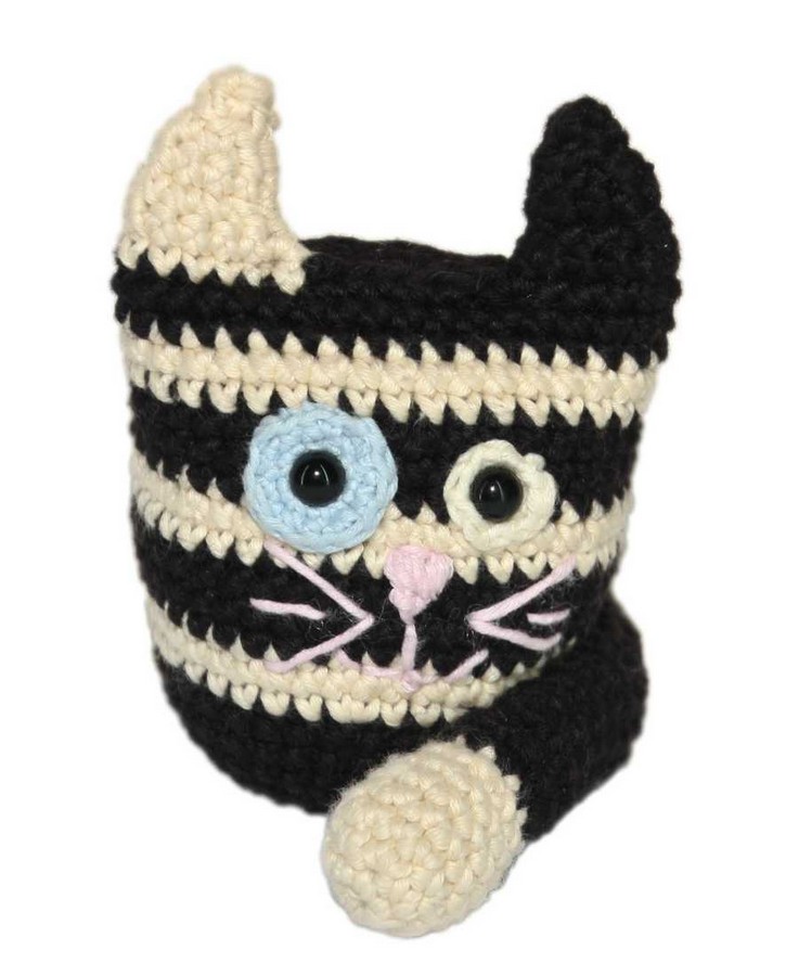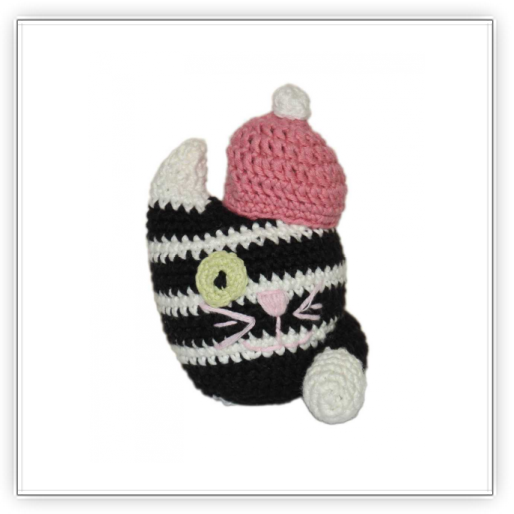 Die Häkelmietzen entstehen als Obermaterial aus 100% Bio Baumwolle und sind allergikerfreundlich mit 100% PE Faser gefüllt. Sie sind ca. 8 cm hoch (ohne Mütze) und haben einen Durchmesser von 5,5cm
