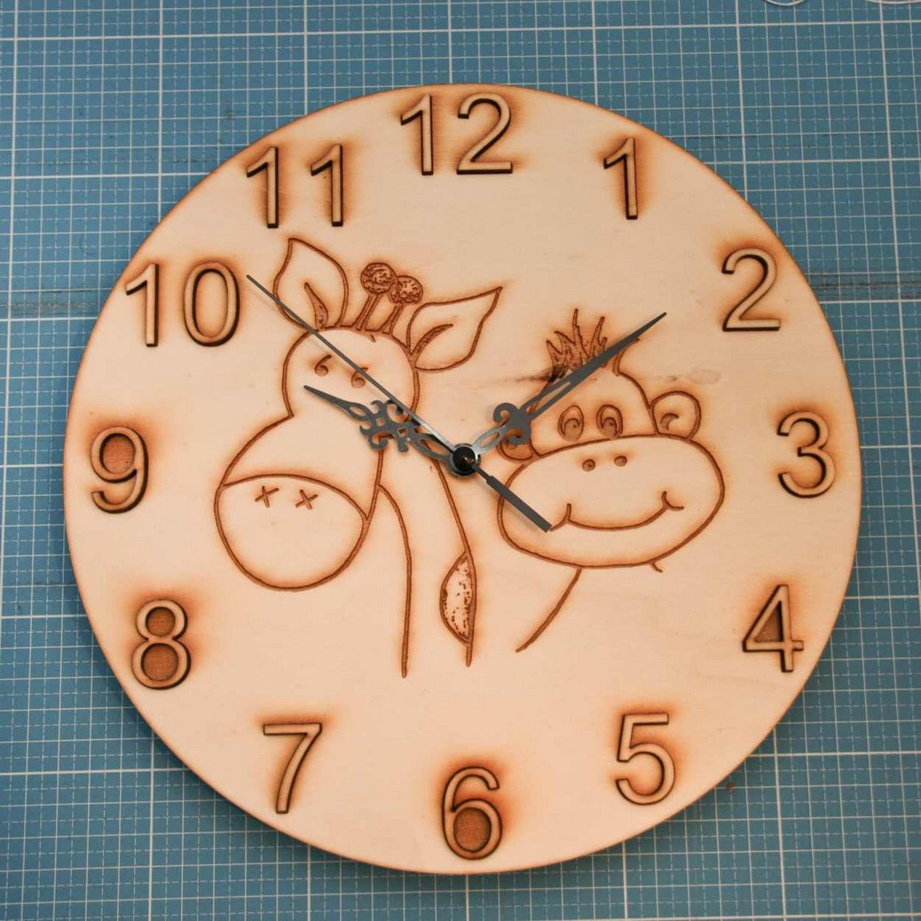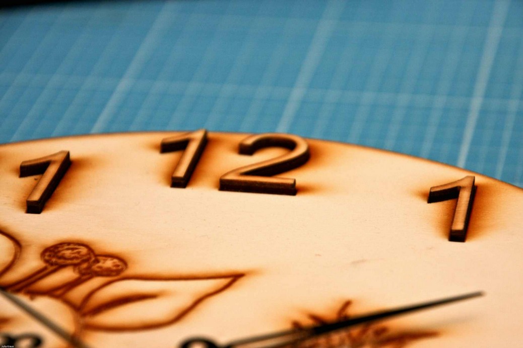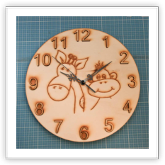 Hier einige Beispiele ....Holzuhr250 x 250mm mit zentraler Gravur, Zahlen reichen als Relief ca. 3mm über das Ziffernblattniveau.