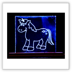 Ebenso häufig wie Holz wird Acrylglas zum Basteln und Gravieren verwendet. Besonders mit der entsprechenden LED-Beleuchtung (incl. Farbwechselspiele / lieferbar!) als Werbematerial unschlagbar.