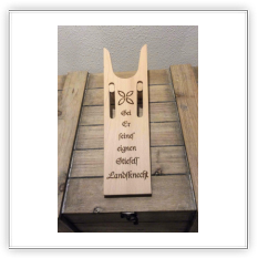 Die Lasergravur erfolgt mit einem CO2 Laser.Besonders schön lässt sich Holz, Leder, Glas, Stein und Plexiglas (und ähnliches) bearbeiten.Das als Vorlagen dienen normale Bilder (jpeg, bmp, gif, png, raw, u.s.w.) oder Vektorgrafikdateien (dxf, crd, u.s.w.).Somit kann eigentlich alles, was man im Grafikprogramm erstellen kann auch gravieren.Die Auflösung/Genauigkeit beträgt ± 0,05 mm. Die maximale Bearbeitungsfläche ist zur Zeit 30x50 cm groß.