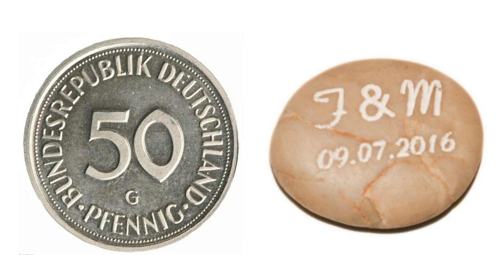 Bei naturbelassenen Materialien, insbesondere bei Steinen hat sich eine Vorabprobegravur bewährt. Es gibt leider auch Steine die sich nicht gravieren lassen.