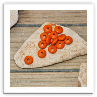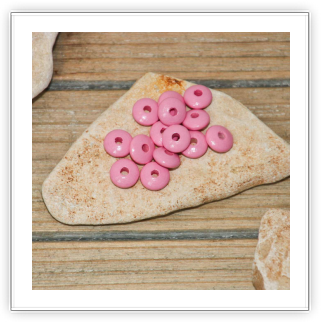 Linsenperlen sind ein wichtiges Element für Schnullerketten, Greiflinge, etc. da durch sie Länge gespart werden kann.
