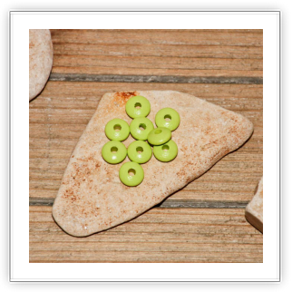 Linsenperlen sind ein wichtiges Element für Schnullerketten, Greiflinge, etc., da durch sie Länge gespart werden kann.