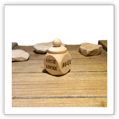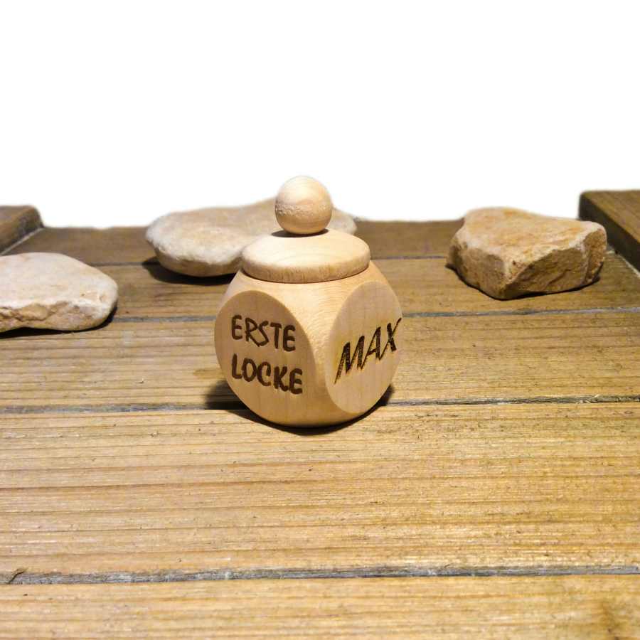Diese kleine Dose aus unbehandeltem einheimischen Ahornholz eignet sich durch den festen Schraubverschluß gut als sichere Aufbewahrung für Milchzähne, die erste Locke, Pillen ...