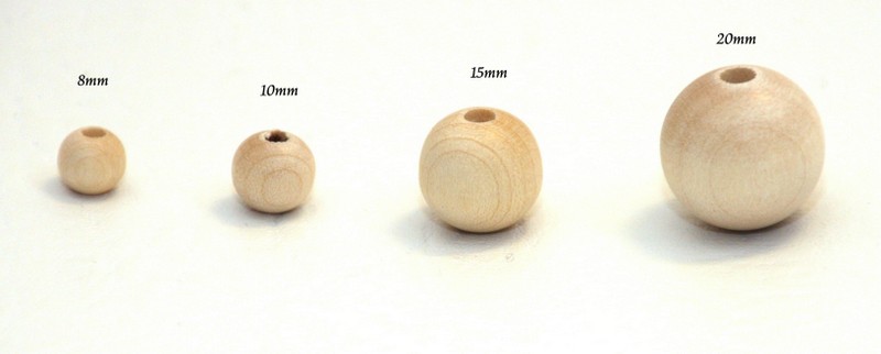 Diese Perlen aus heimischen Hölzern (Ahorn / Buche) sind in verschiedenen Größen lieferbar. Hier 8mm